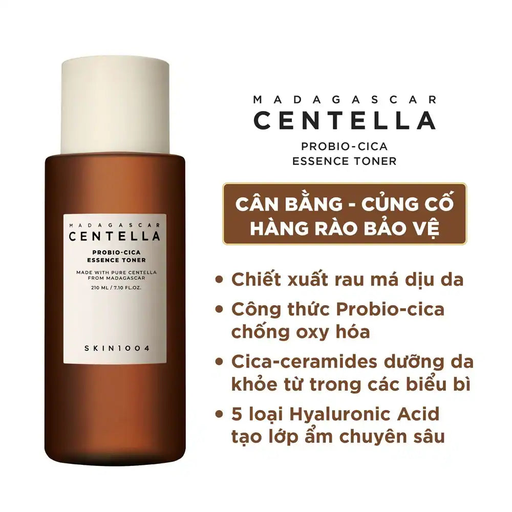 The SKIN1004 Madagascar Centella Probio-Cica Essence Toner is a soothing, lightweight toner designed to hydrate and calm sensitive skin. Formulated with fermented Centella Asiatica (Cica) extract from Madagascar, it helps repair the skin barrier and reduce irritation. The toner also contains ceramides and five types of hyaluronic acid, providing deep hydration and supporting the skin's natural moisture balance. Its gentle, alcohol-free formula makes it suitable for all skin types, including sensitive and acne-prone skin.